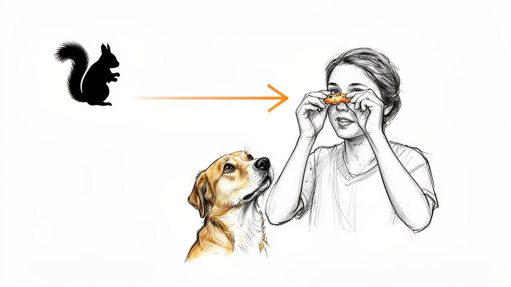 Key Insight: Consistency is everything. Use extremely high-value rewards that your dog only gets for this specific training. Practice in short, five-minute sessions daily to build a strong, reliable response. A strong "Look at Me" cue acts as a powerful management tool, allowing you to redirect your dog's focus before they go over threshold.
