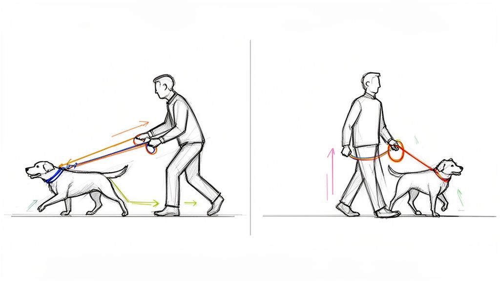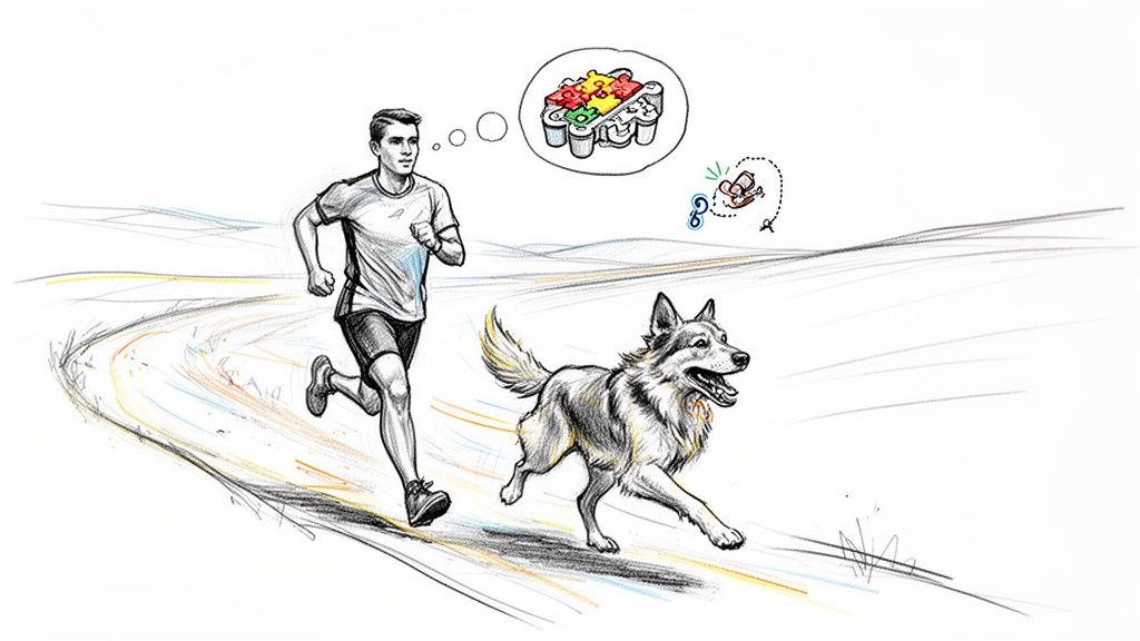 Key Insight: Exercise should reduce stress, not add to it. A frantic hour at a busy dog park can make reactivity worse. Opt for structured, focused activities like a trail run, a long-leash hike in a quiet area, or a dedicated sniffing walk. Even during colder months, it's vital to maintain a routine; find out how to exercise your dog safely in winter to keep their progress on track year-round.