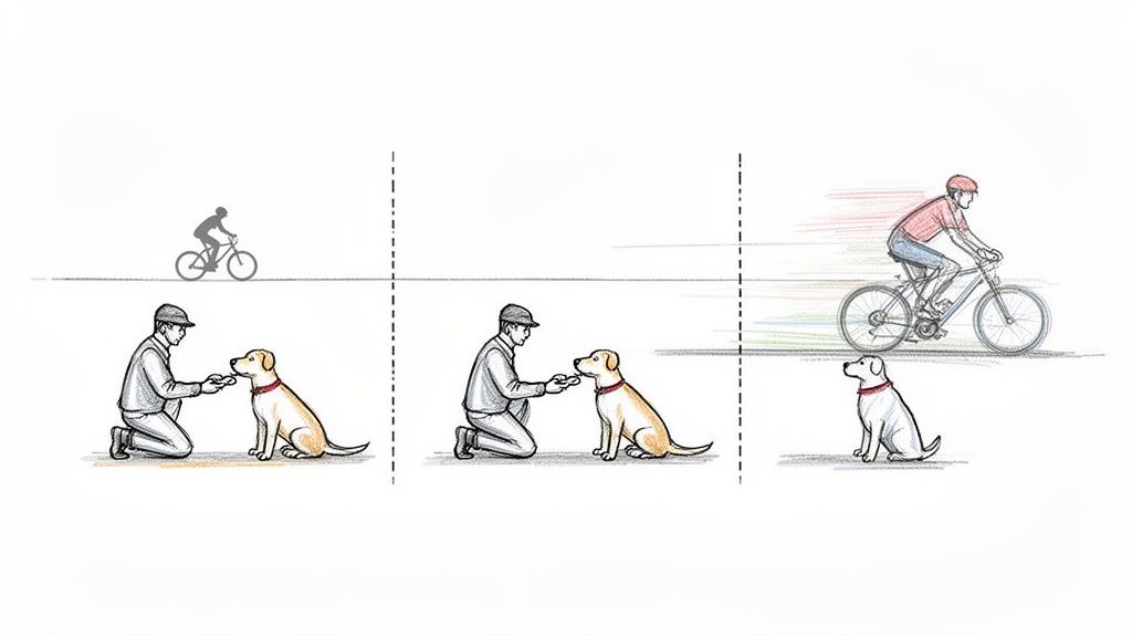 Key Insight: Your goal is to become the "calm in the storm" for your dog. When you stop reacting to the trigger, you give your dog a powerful model for how they should behave. This mental shift is often the missing piece for owners who have tried everything else, as your own anxiety can inadvertently sabotage your training efforts.