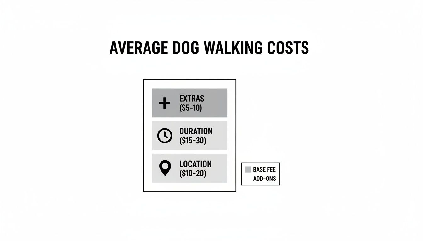 When you start looking up "dog walkers near me prices," you'll notice pretty quickly that the quotes can be all over the map. It's not random—several key things shape the final cost, kind of like how time and distance determine your Uber fare. Getting a handle on these factors helps you size up different offers and find the right match for your dog and your budget.