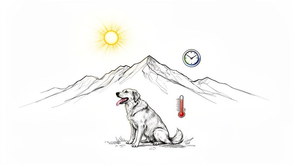 Your dog’s biggest enemy on a summer day is the midday sun. It turns a simple walk into a genuinely risky endeavor. The most crucial adjustment you can make is to shift all strenuous exercise—we're talking running, fetching, or intense play—to the coolest parts of the day. That means you're either an early bird, getting out before the sun heats up the pavement, or a night owl, waiting until well after sunset.