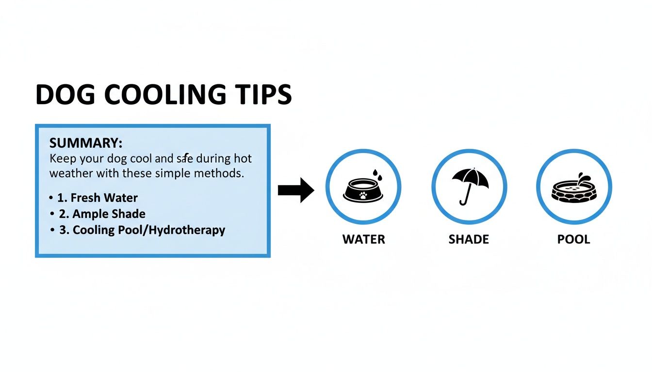 When you're trying to keep an outdoor dog cool in the summer, it really comes down to three non-negotiables: constant access to fresh water , reliable shade , and scheduling activity to avoid the hottest parts of the day. Think of these as the absolute bedrock of summer safety for your dog.