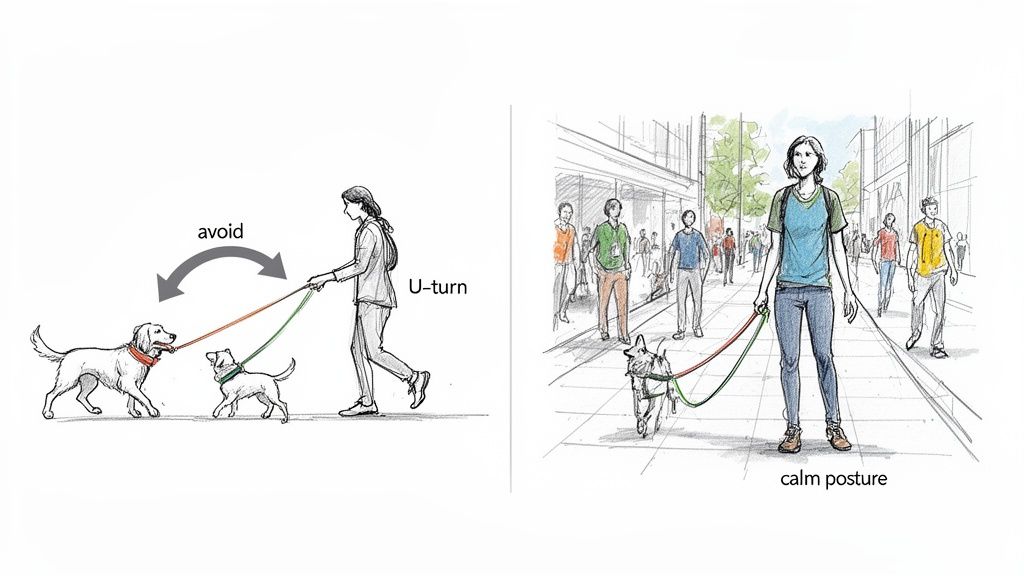 This approach is all about minimizing risk. For dogs that find these situations especially tough, getting some specialized guidance is a game-changer. Our article with powerful tips for reactive dogs can be a huge help: https://www.denverdog.co/8-powerful-reactive-dog-training-tips-that-work-in-2026.