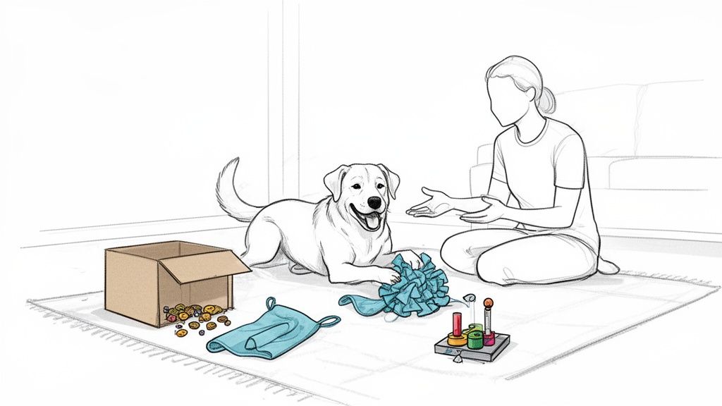 You don't need a huge yard or a pile of expensive toys to spoil your dog with incredible experiences. Honestly, your own home is one of the best places to provide the kind of mental stimulation that truly satisfies their natural instincts. It's time to think beyond endless games of fetch and introduce some brain-busters that will build a more confident, focused, and happy dog.