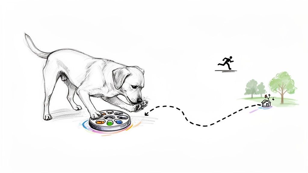 The goal is simple: teach your dog that being alone is safe and maybe even a little boring (in a good way!). You want to transform your departure from a moment of fear into a cue for them to settle in for a nice, quiet nap.