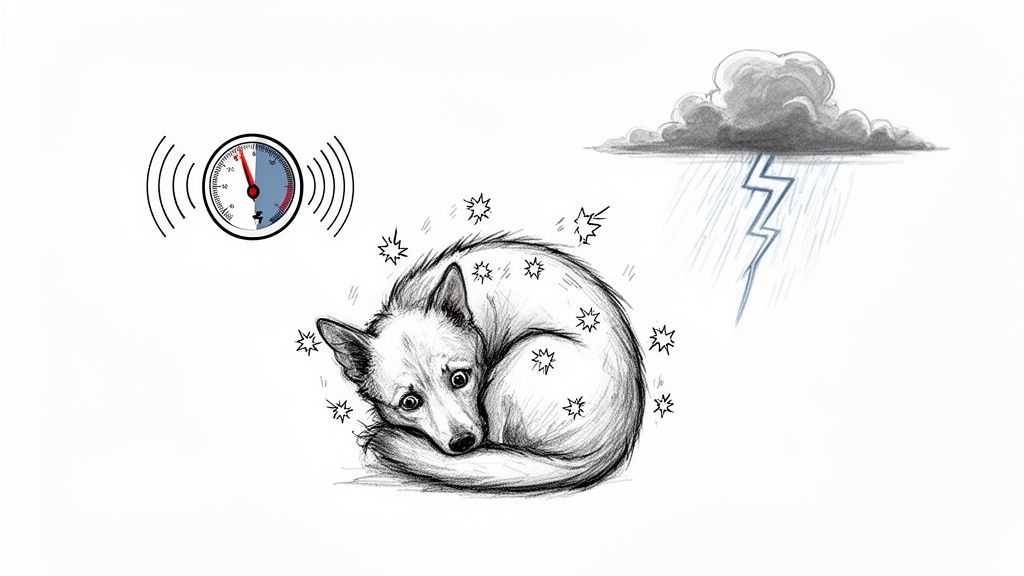 Imagine your dog has a super-sensitive, built-in weather station. They're tuned into a whole symphony of environmental shifts that we humans completely miss. For them, an approaching storm isn't just one thing—it’s a multi-sensory assault that triggers a true fight-or-flight panic.