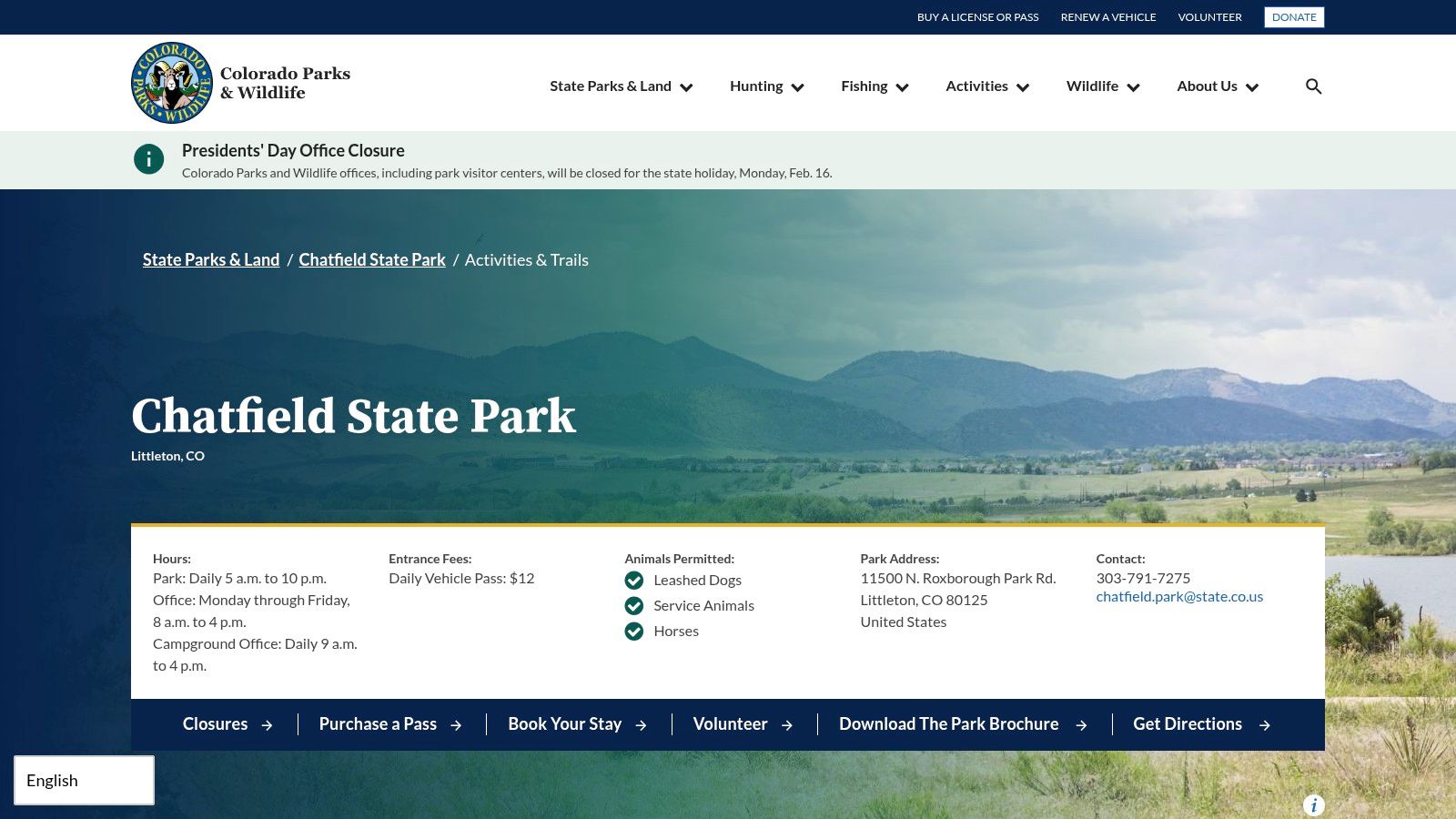 Website: https://cpw.state.co.us/state-parks/chatfield-state-park/chatfield-state-park-activities-and-trails