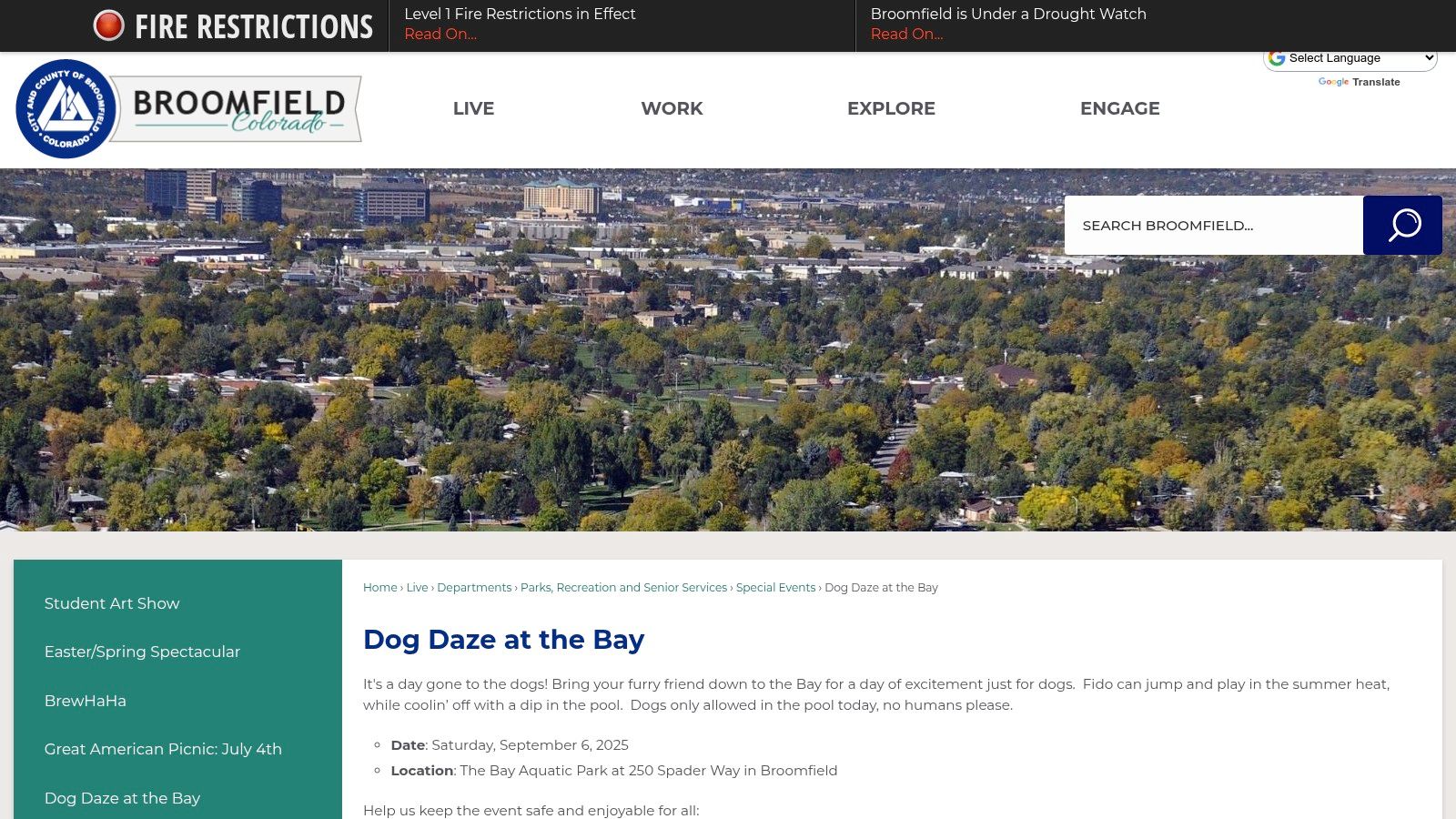 Pro-Tip: Follow the City of Broomfield's recreation department on social media or subscribe to their newsletter to get an immediate alert when Dog Daze tickets go on sale. The sessions for this one-day-a-year event sell out extremely fast, often within hours.