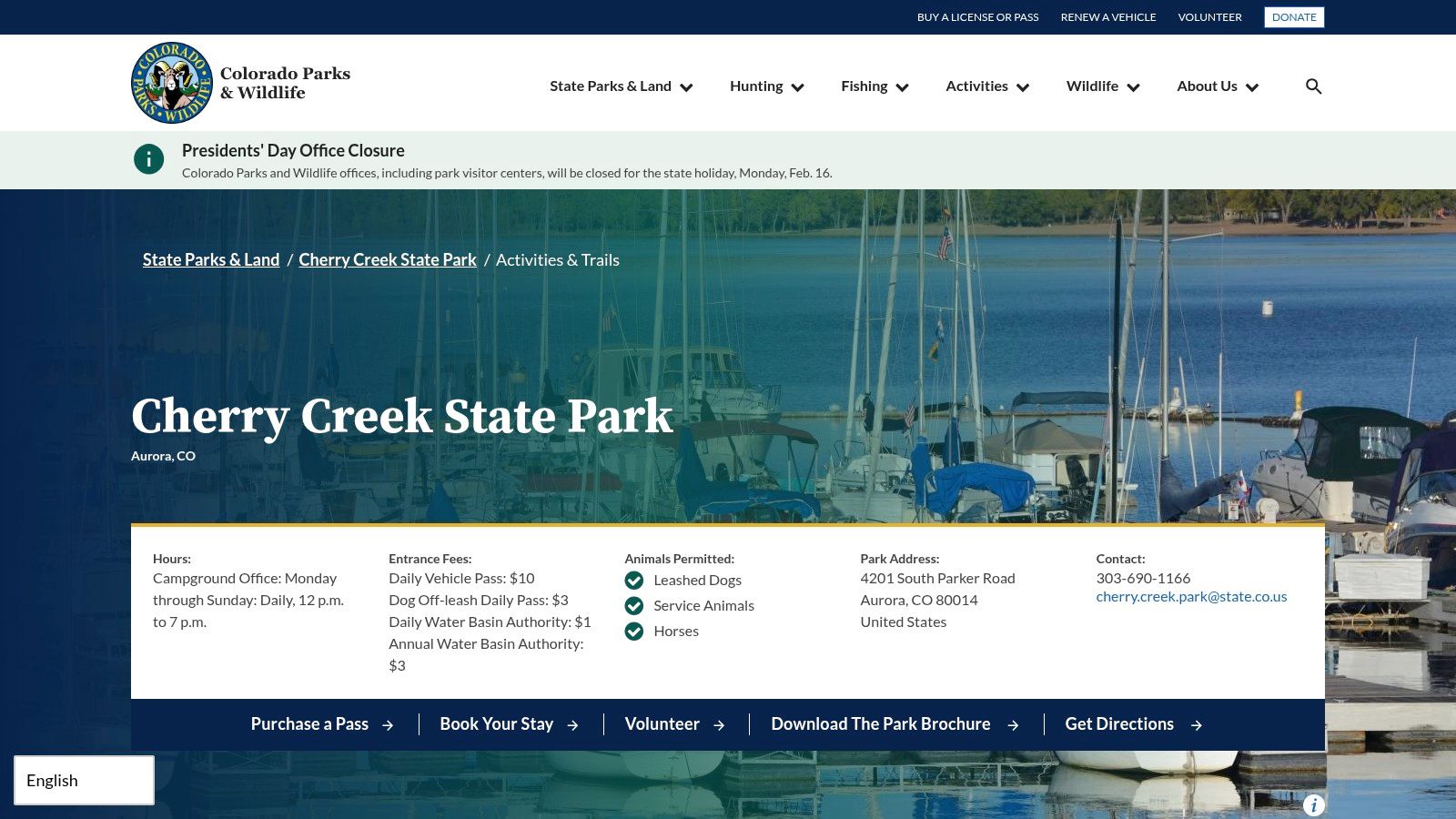 | Location | 4201 S Parker Rd, Aurora, CO 80014 (within Cherry Creek State Park) |
