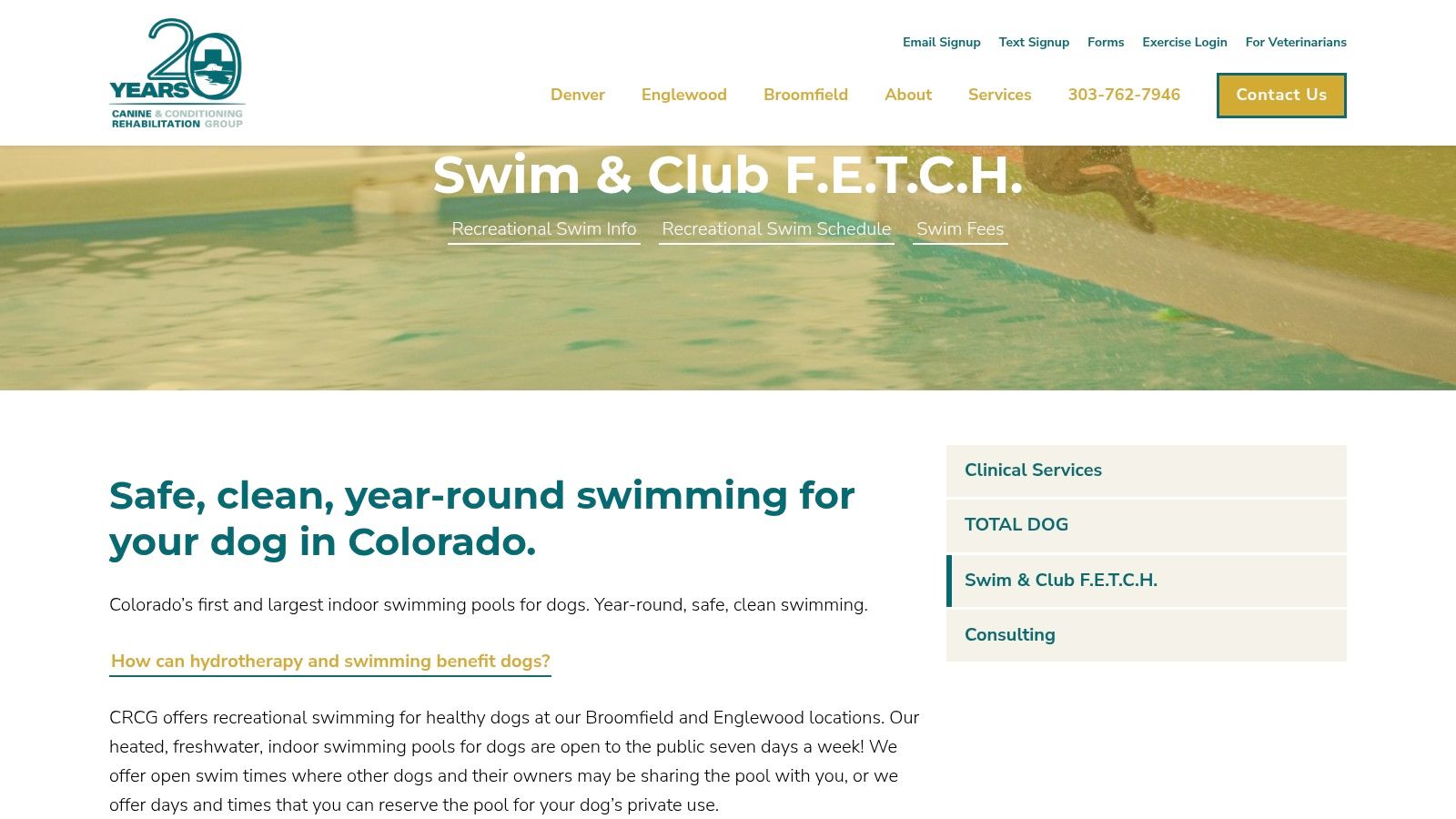 When Denver's unpredictable weather ruins your plans for a day at the lake, Canine Rehabilitation & Conditioning Group (CRCG) offers a perfect, year-round solution. As the premier destination for indoor dog swimming in Denver, CO , CRCG operates Colorado’s largest public, heated indoor pools specifically designed for canine use. With locations in Englewood and Broomfield, they provide a safe, controlled, and exceptionally clean environment for dogs of all ages and abilities to enjoy the water.